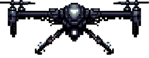 8 bit front image blue red scifi police drone. Single Game Texture. In-Game asset. 2d. Blank background. High contrast. No shadows