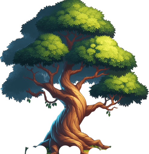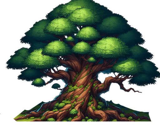 Giant_tree. Single Game Texture. In-Game asset. 2d. Blank background. High contrast. No shadows