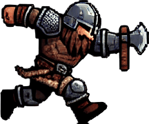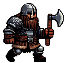 A spritesheet with various poses for a heavily armored little dwarven warrior with an axe in various poses for use in an endless runner game. Te poses should include walking, eating, jumping, ducking low, and chargingforward. Sprites should be laid out in a rectangular grid wih blank space between them. Style should be medieval fantasy.. Single Game Texture. In-Game asset. 2d. Blank background. High contrast. No shadows.