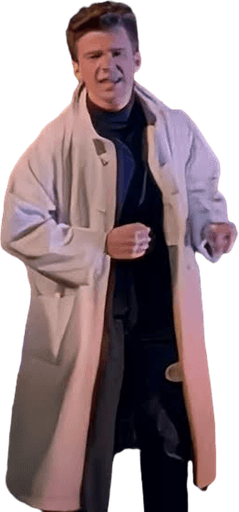 Rick roll unlocked button. In-Game asset. 2d. High contrast. No shadows