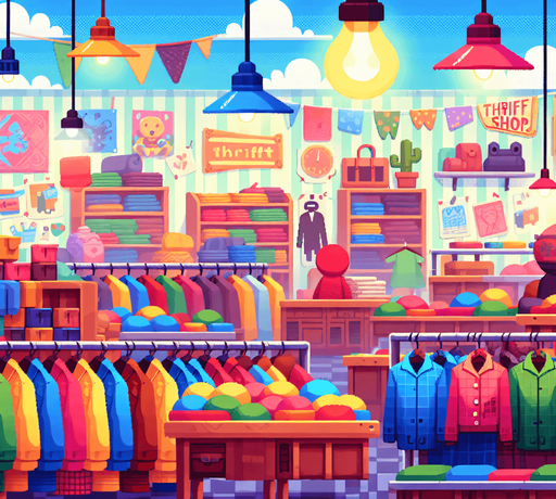 portrait banner, high definition, for a game titled "Poppin' Tags: A Thrift Shop Trubute"