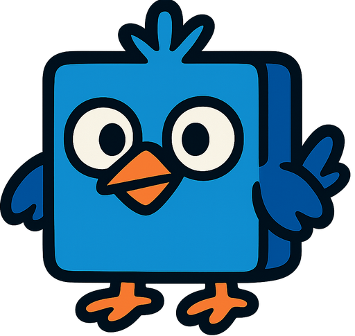 Square shaped rainbow bird facing right. In-Game asset. 2d. High contrast. No shadows