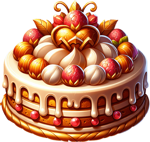 gâteau ( pas réaliste ). Single Game Texture. In-Game asset. 2d. Blank background. High contrast. No shadows.