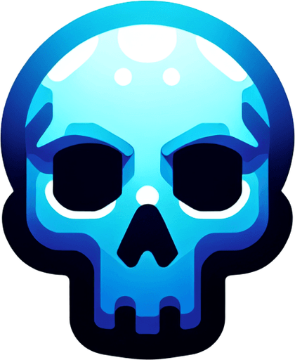 tête de mort coter droit en bleu coter gauche en rouge. Single Game Texture. In-Game asset. 2d. Blank background. High contrast. No shadows.