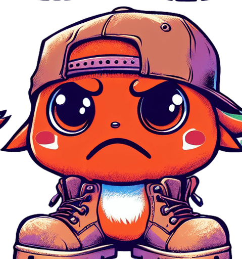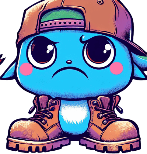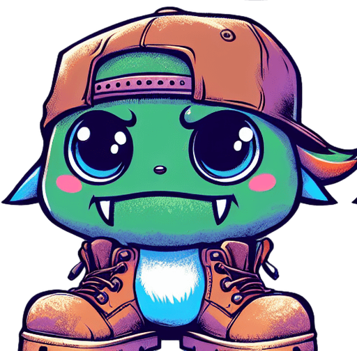 A cute monster wearing a snapback and Timberland shoes in Chibi style Single Game Texture. In-Game asset. 2d. Blank background. High contrast. No shadows.