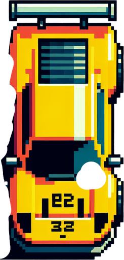 Top-down view of a simple pink car in pixel art style, 64x64 size, designed for an endless driving game, minimal detail, arcade style". straight top. View Single Game Texture. In-Game asset. 2d. Blank background. High contrast. No shadows