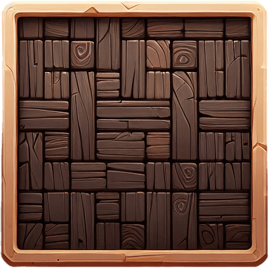 2D wreckage of wood, square, HD colors. Single Game Texture. In-Game asset. 2d. Blank background. High contrast. No shadows