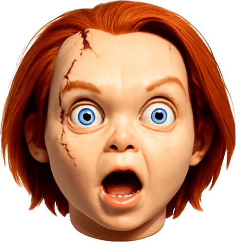 3D Scary but funny annabelle doll face meme. In-Game asset. 3D. High contrast. No shadows
