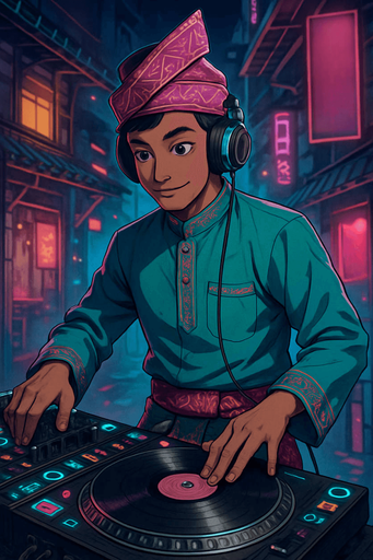Anime style design for the round shape song cover of New Era Malay Style