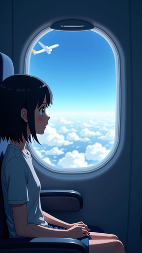 Round shape of song cover of anime style with Sky Journey theme. In-Game asset. 2d. High contrast. No shadows