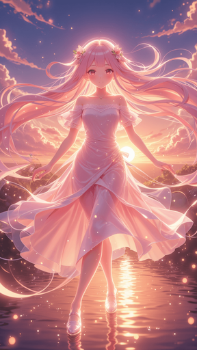 Round shape of anime style song cover with the themed Sunrise Waltz. In-Game asset. 2d. High contrast. No shadows
