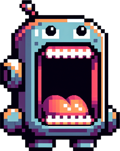 Design a pixel art scene for a game item: a TV broadcasting a news alert about an imminent AI uprising. Include flashing warning signs and depict the newscaster in a state of high alert to convey urgency and tension, ensuring all elements are styled to fit within a pixelated game environment.. pixelated. 8 bit.. Single Game Texture. In-Game asset. 2d. Blank background. High contrast. No shadows.