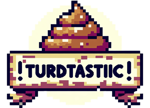 text saying "Constipated" against a poop banner. pixelated. 8-bit. Single Game Texture. In-Game asset. 2d. Blank background. High contrast. No shadows.