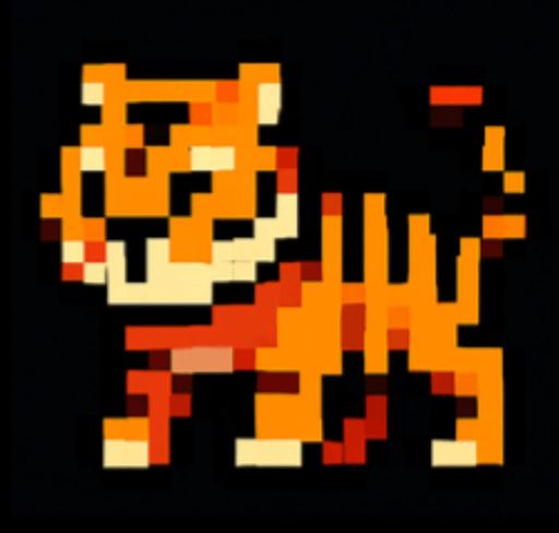 Ekranı 4 e böl ve 4 tane pet 2 d yap pixel biri papağan biri kaplan biri yılan biri de kemikten oluşan gizemli bir pet siyah kırmızı tarzı renkler kullan. In-Game asset. 2d. High contrast. No shadows
