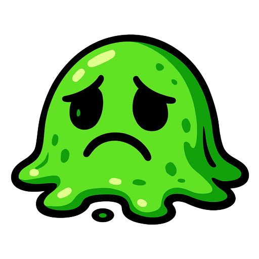 1 tane az kaslı yeşil slime yap çok az kası olsun nötr surat olsun. In-Game asset. 2d. High contrast. No shadows ayakları elleri kafası var