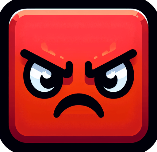 квадрат со злым лицом.. Single Game Texture. In-Game asset. 2d. Blank background. High contrast. No shadows.