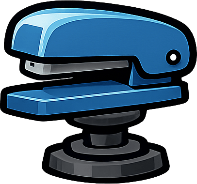 Stapler Turret Sprite Sheet: An office stapler mounted on a simple rotating base images show it opening and closing.. In-Game asset. 2d. High contrast. No shadows
