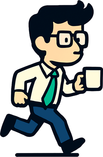 Intern holding a coffee cup running 3 frames. In-Game asset. 2d. High contrast. No shadows