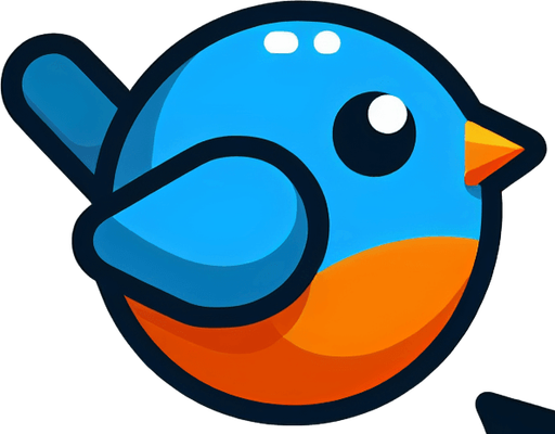 Single simple cartoon bird for a game titled "Flap & Bounce". The bird has lots blue and orange colors and is high contrast. Only bird. No shadows