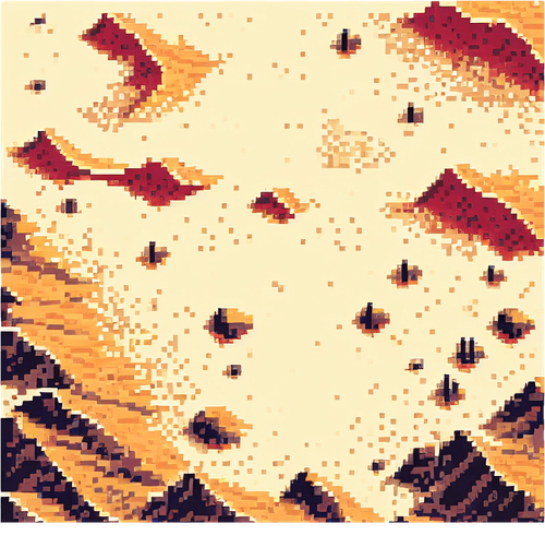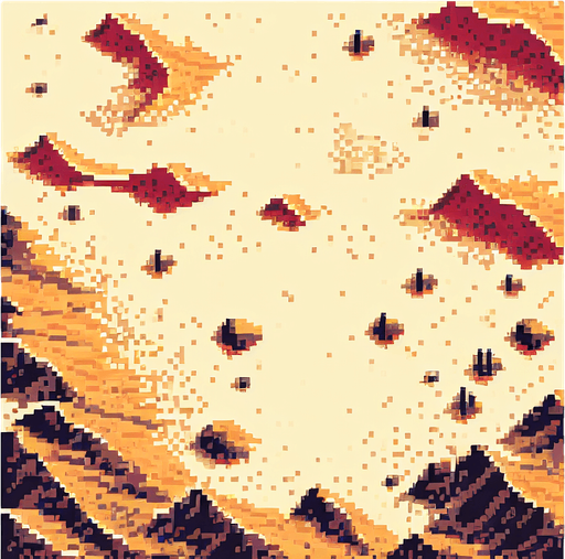 Pixel art top down aerial view barren desert, sand dunes, retro shooter