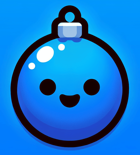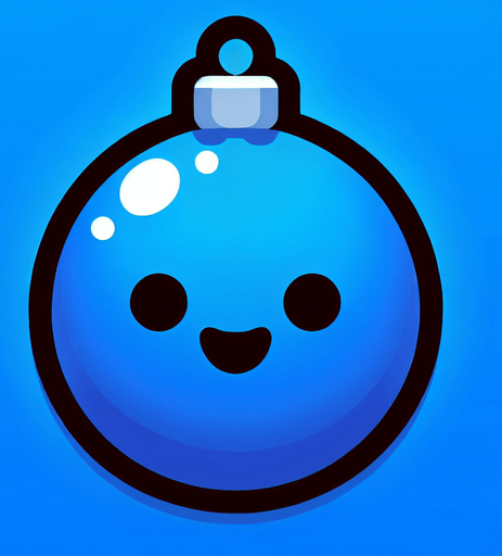 Perfectly square bright cobalt blue Christmas decoration with cute happyy face. Cartoon style. Cute art style. Simple vector style. No Shadows Single Game Texture. In-Game asset. 2d. Blank background. High contrast. No shadows.