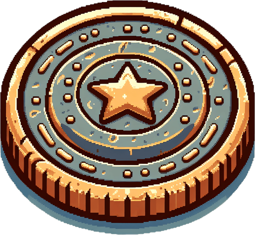 Coin. Single Game Texture. In-Game asset. 2d. Blank background. High contrast. No shadows.