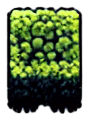Create a sprite sheet showing the different components of the hedge. The design should include views from above. Arrange the components on a dark background, neatly aligning each part in rows and columns for easy identification and use in game development..