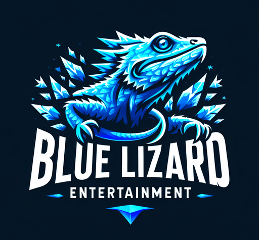 logo for a company called "blue lizard entertainment" using a damaged font and frozen elements.