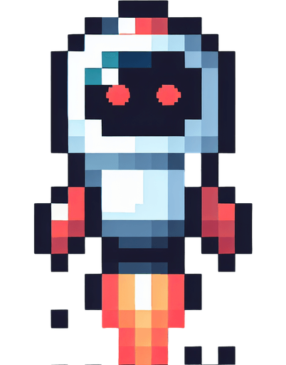 AI robo rocket pointing downward, pixelated. flat. 8 bit..
