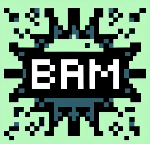 Pixel art of the bam symbol.