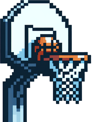 pixel art, an basketball hoop seen from the side.. Blank background. High contrast. No shadows.