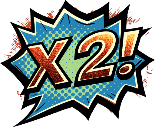 text popup "x2!". comic style