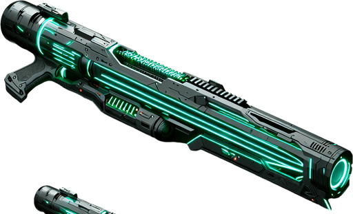 elongated futuristic laser canon gun green. top view