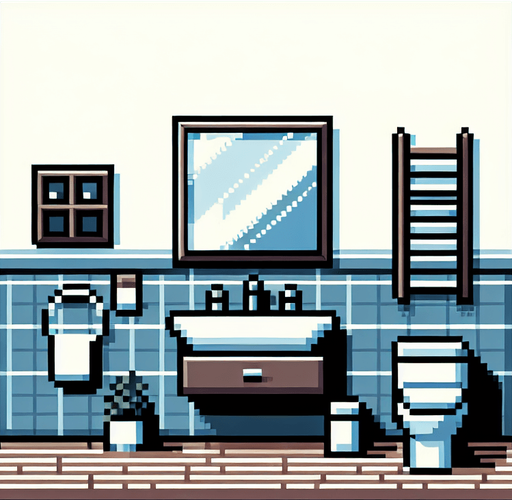 minimalist bathroom. pixelated. 8-bit. Single Game Texture. In-Game asset. 2d. Blank background. High contrast. No shadows.