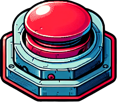 A spritesheet showing only 2 sprites, of the unpressed and pressed states of a BIG RED BUTTON respectively . The sprites in the sheet should be laid out with transparent space between them in clearly defined rectangular areas. The button itself should be large and round, like on old arcade game machines, with a plastic inset around it, and when it's pressed down, it should appear lower relative to that plastic ring, so that it is visibly easy to distinguish between the pressed down and unpressed state..