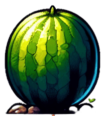 A spritesheet showing a watermelon plant in various stages of germantion, from seed over sapling and to full grown plant, and then the ripe watemelon. The sprites should be laid out in a rectangular grid with blank space between them.. Single Game Texture. In-Game asset. 2d. Blank background. High contrast. No shadows..