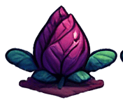 A spritesheet showing a pointed red cabbage plant in various stages of germantion and groth, from seed over sapling, to bloom and to full grown plant, and then the ripe cabbage. The sprites should be laid out in a rectangular grid with blank space between them.. Single Game Texture. In-Game asset. 2d. Blank background. High contrast. No shadows..