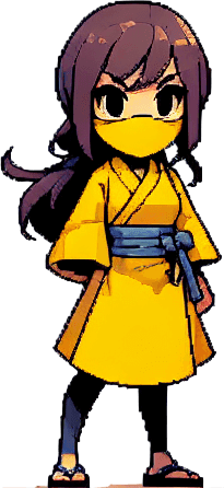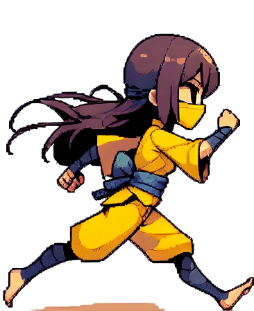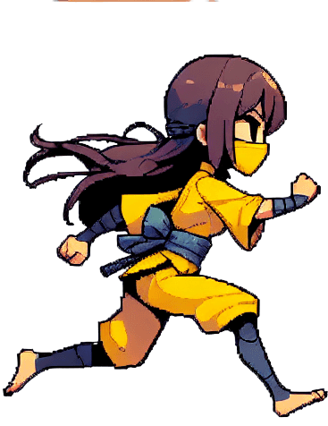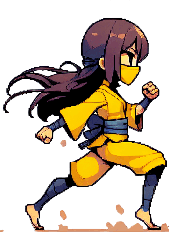 little ninja girl with a yellow kimono. Running frames: left and right legs in alternate positions. 2x2 sprite sheet