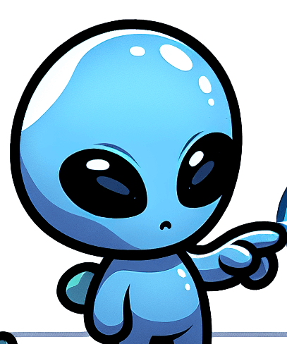 SINGLE alien in BLUE color with GIF animation of arrows animation with a spark at the end of the sprite animation.