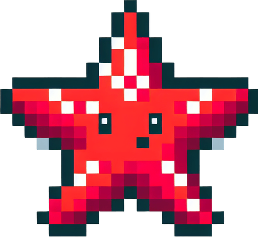 8-bit. cartoon. starfish. Single Game Texture. In-Game asset. 2d. Blank background. High contrast. No shadows.