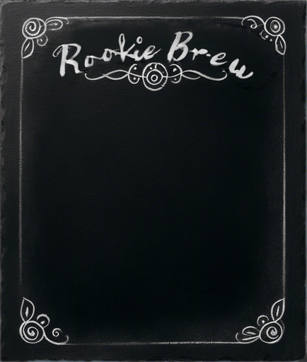 "ROOKIE BREW" handwritten in chalk