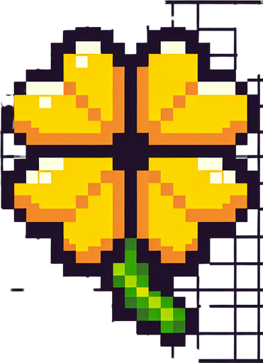 pixel art of a 4 leaf yellow clover.. Single Game Texture. In-Game asset. 2d. Blank background. High contrast. No shadows.