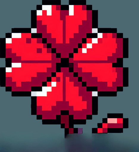 pixel art of a 4 leaf red clover.. Single Game Texture. In-Game asset. 2d. Blank background. High contrast. No shadows.