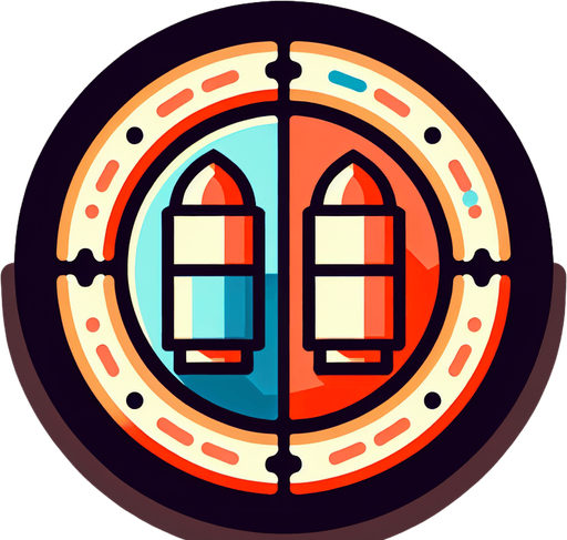 Circular dual bullet powerup asset. No text. Single Game Texture. In-Game asset. 2d. Blank background. High contrast. No shadows.