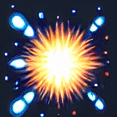 Varias explosiones espaciales pack. Single Game Texture. In-Game asset. 2d. Blank background. High contrast. No shadows.