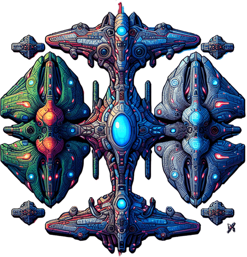 full color fron alien spaceship pack enemiy spacechip pack, frontal view.