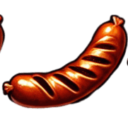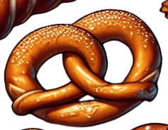 A spritesheet full of different delicious medieval cakes, snacks, pretzels, sausages, hams, and beverages..