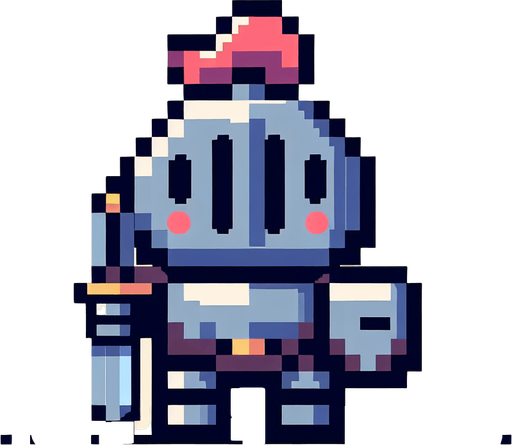 square shapped knight. pixelart. funny.. Single Game Texture. In-Game asset. 2d. Blank background. High contrast. No shadows.