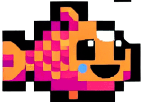 A pallet of 10 different unique fish. 8-bit art style. Fun, happy facial expressions..