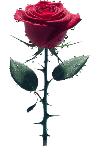 single beautiful rose with its stem. full white background